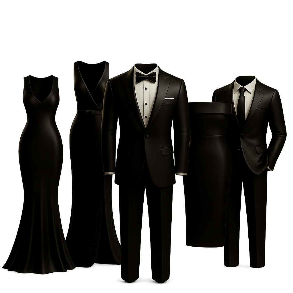 All Black – Please note that the dress code for the event is all-black, formal evening wear.